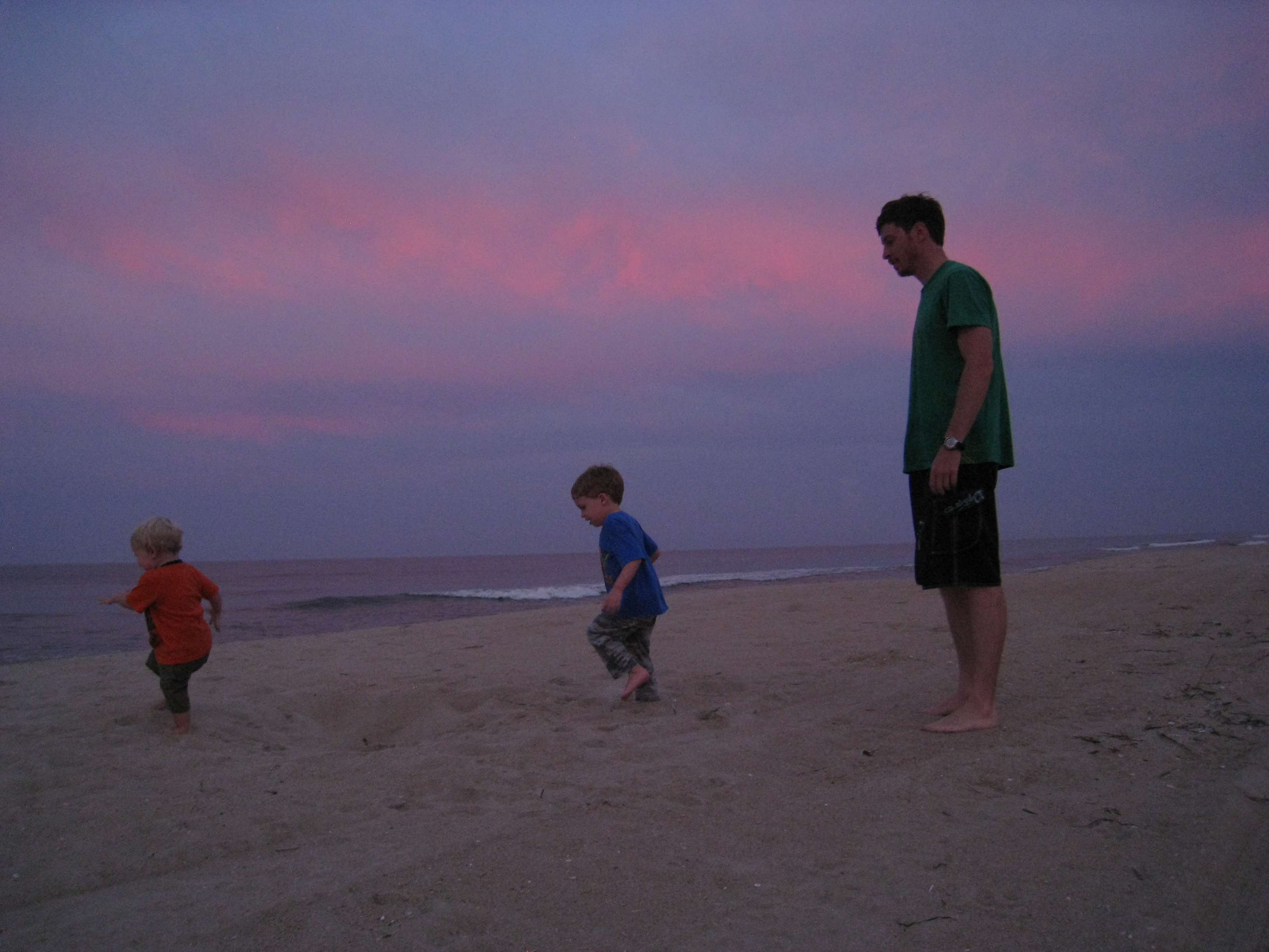 Noel, Charlie, Todd heading for the water again at sunset
