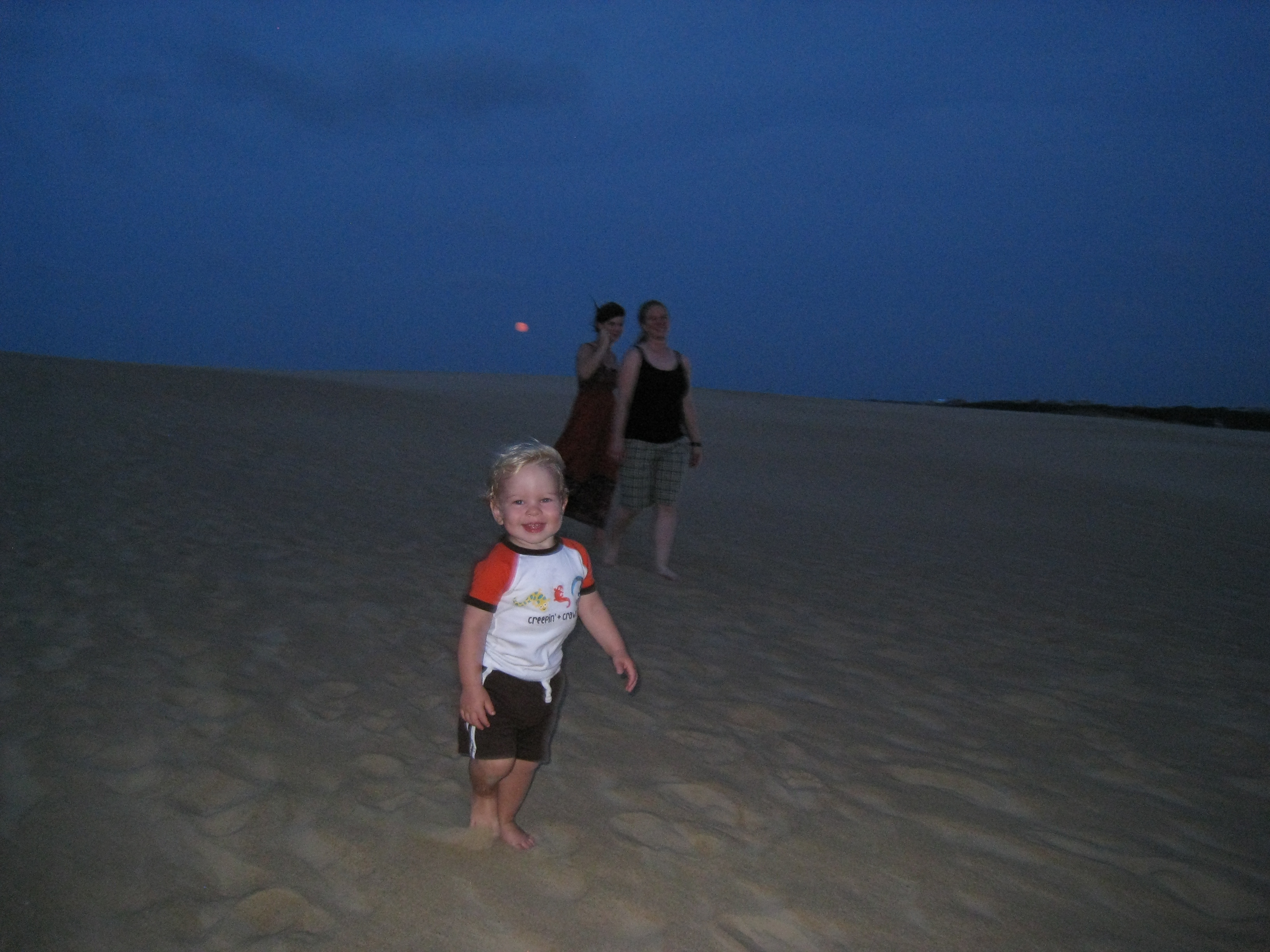 Noel, Suzy, Linda after sunset on Jockeys Ridge